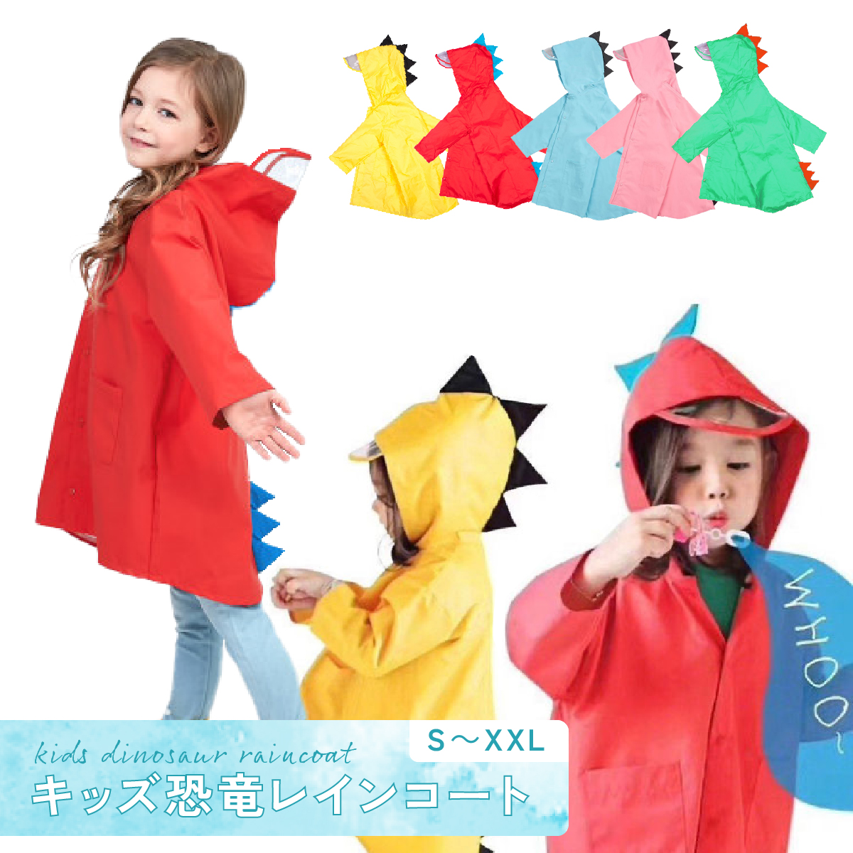 レインコート キッズ ポンチョ 恐竜 子供 ボタン式 ポケット ポーチ付き 80 90 100 110 120cm S M L XL XXL カッパ 合羽 幼稚園 保育園 小学生 レインウェア