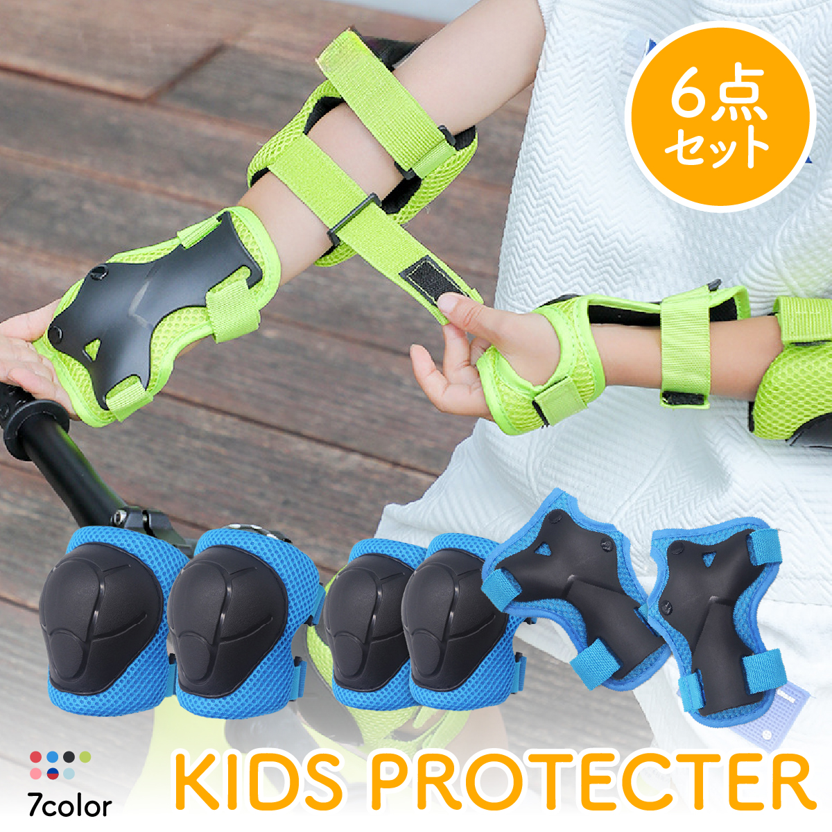 カラフル&耐久力抜群の子供用ープロテクター6点セット。