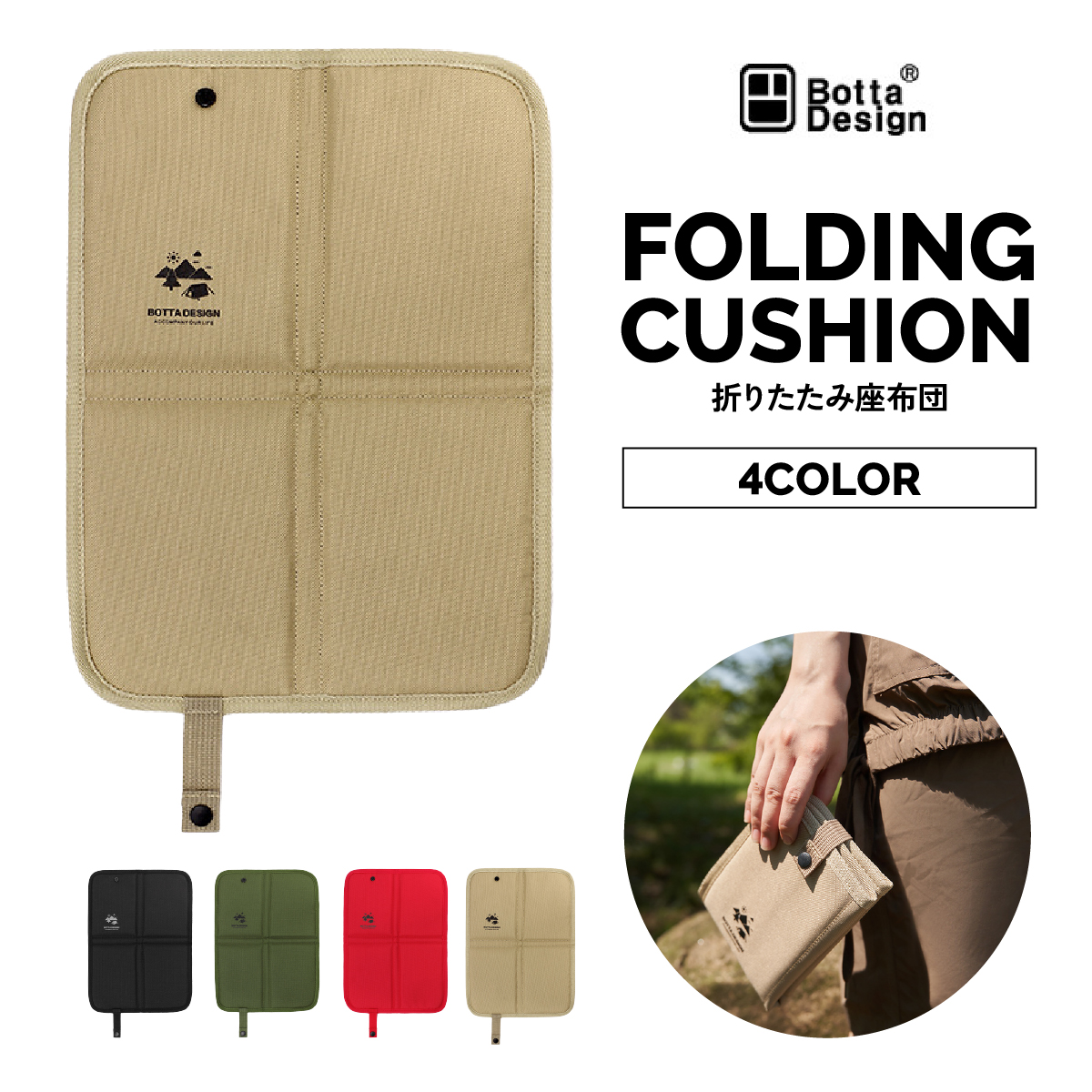 ・持ち運びしやすい折り畳みクッションです。