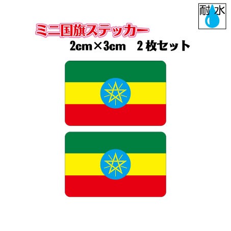 エチオピア国旗ステッカー ミニサイズ 2枚セット 2x3cm 屋外耐候耐水シール 携帯・スマホなどに