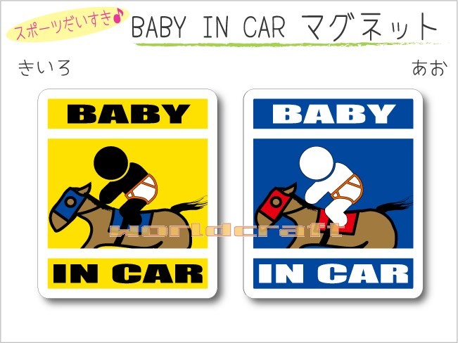 名前・名入れ可 BABY IN CAR 競馬ジョッキー・乗馬バージョン マグネット ベビー 赤ちゃんが乗っています 車 おもしろ かわいい 磁石 オリジナル