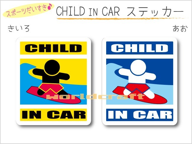 CHILD IN CAR サーフィンバージョン ステッカー 子どもが乗っています 車 かわいい シール オリジナル KIDS 選べるカラー