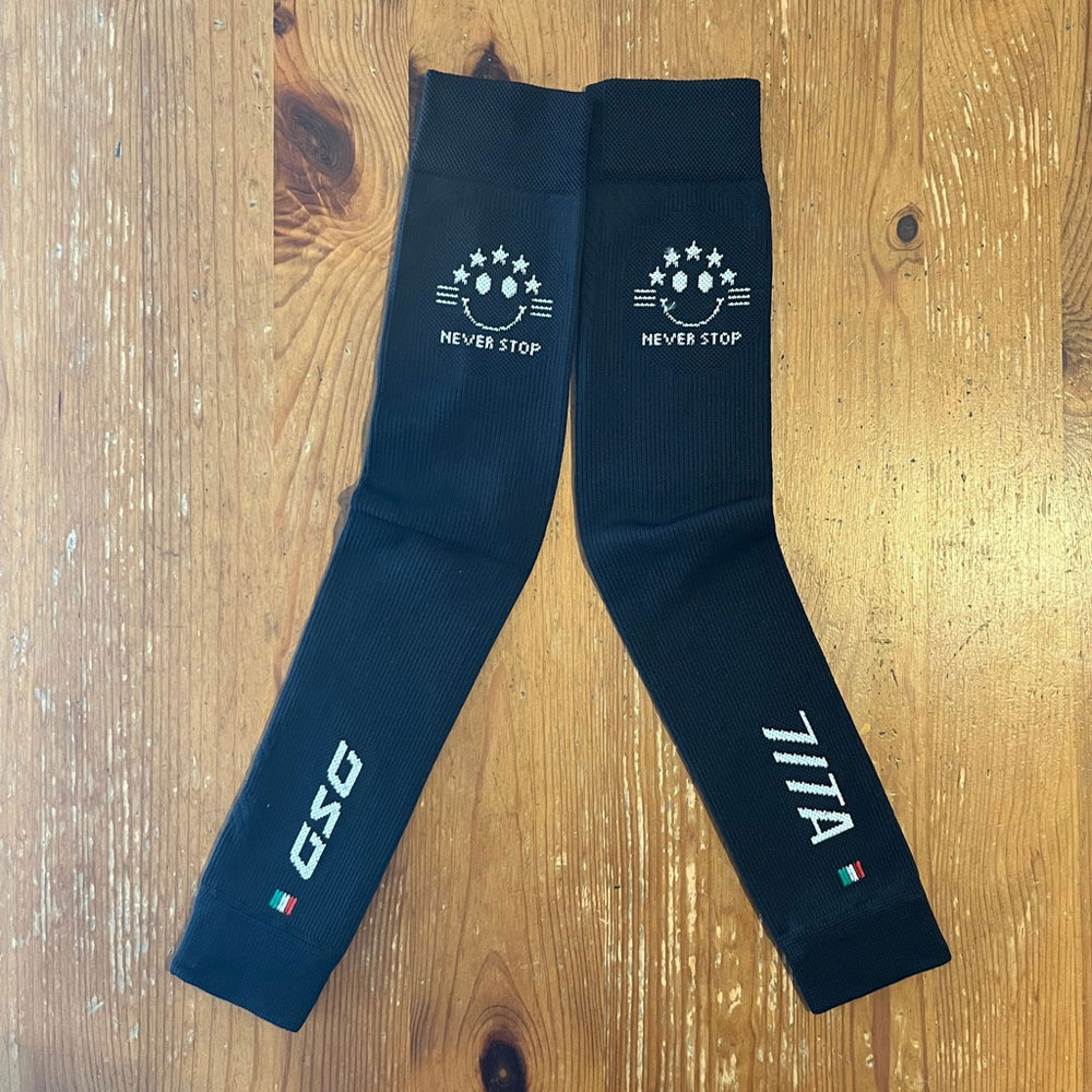 春先や秋口の少し肌寒い時期に半そでジャージなどと組み合わせてご使用下さい - ソックス同様のニット素材ですので、防風性、保温性、UVカット性能はございません