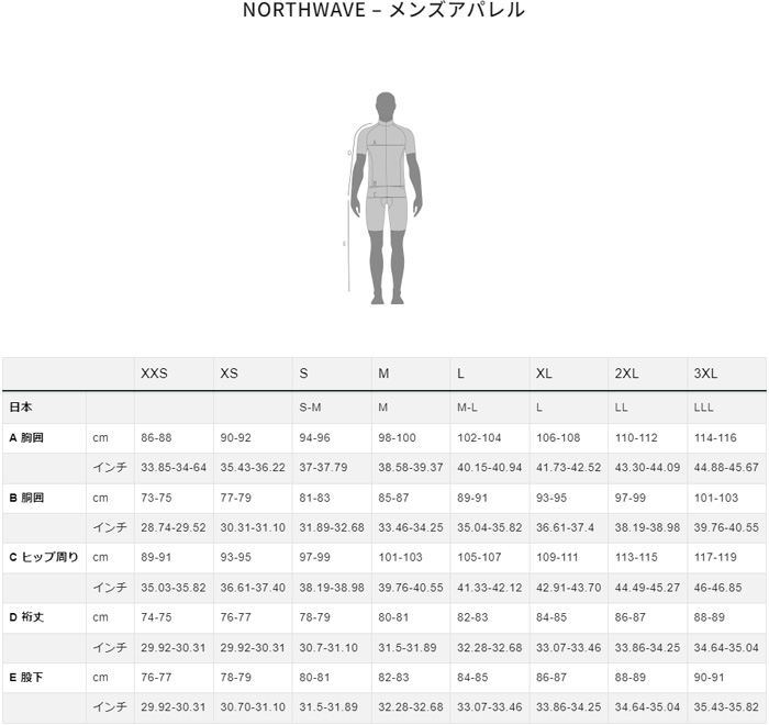 ノースウェーブ ウェア サイズ表 単位:cm商品のカラー・サイズについて