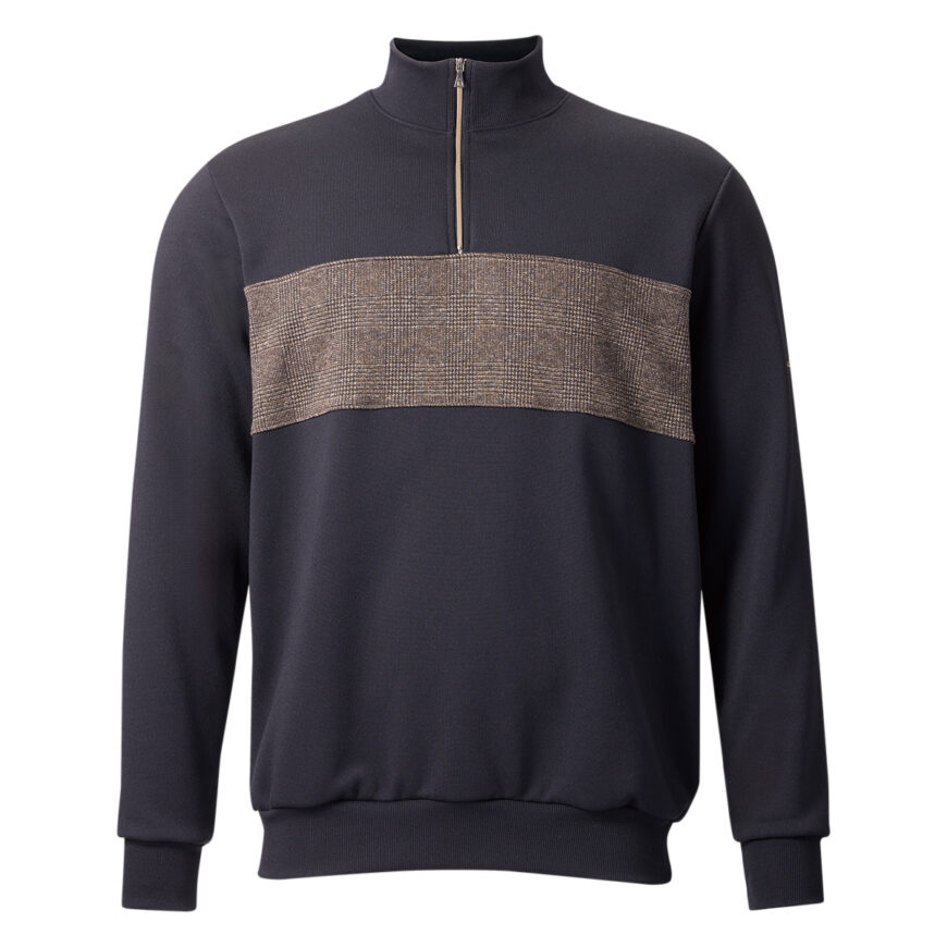 クラッシックな自転車シーンをインスパイアした、リブ編みスタンドカラースウェット。- 色合いに奥行き感のあるウール混グレンチェック生地と、ふくらみのある裏パイルのコンビネーションで保温。