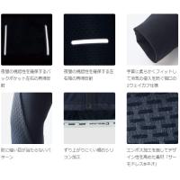 - フラットな生地表面とエンボス加工を施した2種類の生地表面を持つ素材「サーモドレスネオ」を組み合わせて、シンプルながらもデザイン性を高めたジャージ。