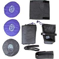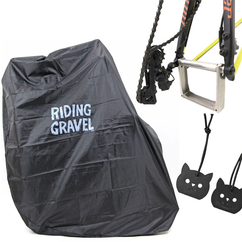 ロードバイクより一回り大きい、グラベルバイク用大型縦型輪行袋 - ダミーローターとスルーアクスル用エンド金具がセットされた、すぐに輪行できちゃうセット。