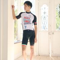 7ITAらしいピース&スマイルのメッセージを前面に出したポップなデザインのメンズジャージ。- こんな時代だからこそ、サイクリストから平和を願う気持ちが拡がって行けばいいなと祈っています。