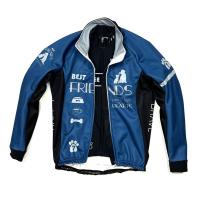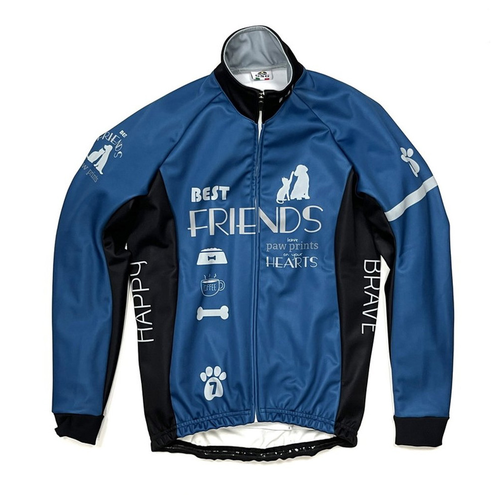 仲良く遊ぶイヌとネコがモチーフとなった、可愛らしいデザインのサイクリングジャケット。- メッセージは「Best Friends leave paw prints on your hearts(親友はあなたの心に肉球跡を残す)」という心温まる言葉がプリントされています。この商品はどんな人でも笑顔にさせること間違いなしです!