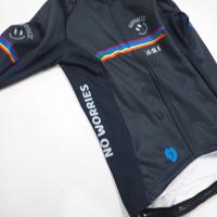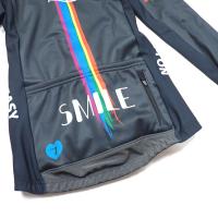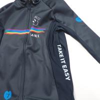 7ITAの魅力が詰まった一着!- スマイル、レインボー、ピースマーク、Happinessのロゴが組み合わさり、カラフルなデザインが目を引きます。さらに、サイドには“No worries, Take it easy”という文字が入り、リラックスした気分でサイクリングを楽しんで頂ける様、願いを込めています。