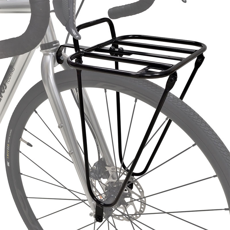 ロードバイク・クロスバイク向け軽量フロントキャリア - フロントフォークのダボと、フォーククラウン中央の貫通孔の3か所でしっかりと取り付けできます。