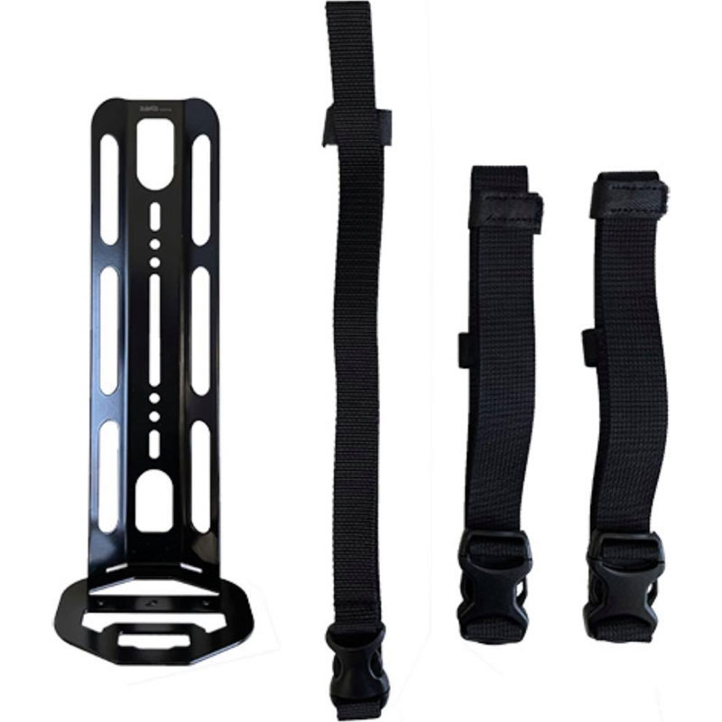 ダボスとミノウラがコラボレーションしたグラベルパッキングケージ - 付属の横ストラップでしっかりと固定し、オフロードライドでも荷物の縦揺れによるズレを解消すべく縦ストラップも追加付属しております。