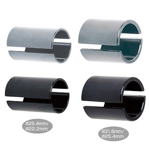 クランプ径φ22.2mmのバーをφ25.4mmのステムに、 クランプ径φ25.4mmのバーをφ31.8mmのステムにセットするためのスペーサーです。 | サイズ | 25.4/22.2mm | 31.8/25.4mm | 31.8/26.0mm | | 材質 | アルミ | アルミ | アルミ | | カラー | ブラック | ブラック | ブラック | | 対応ステムクランプ内径 | φ25.4mm | φ31.8mm | φ31.8mm | | 対応ハンドルバー外径/幅 | φ22.2mm/40mm | φ25.4mm/35mm | φ26.0mm/40mm | | 重量(カタログ値) | 11g | 22g | 16g | クランプ径の違うハンドルバーとステムを組み合わせる場合に使用するシム。 | |