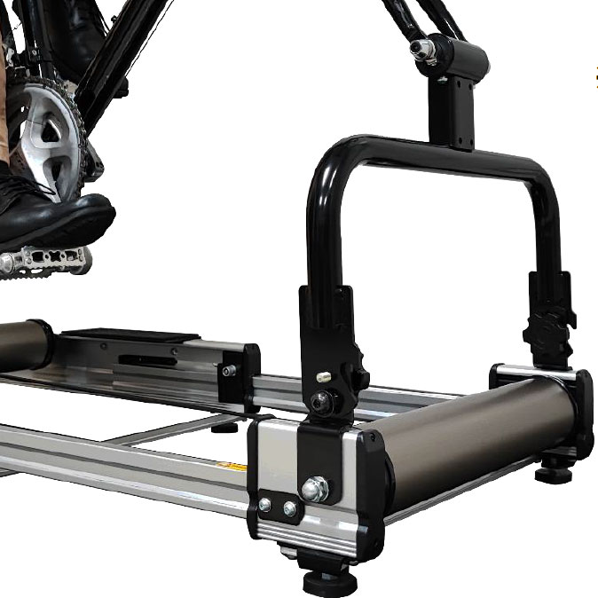 3本ローラーをより多用途で使えるようにできる『R730専用アクションブリッジ』が登場! - R730用の前フォーク固定補助器具で安定したペダリングが可能。