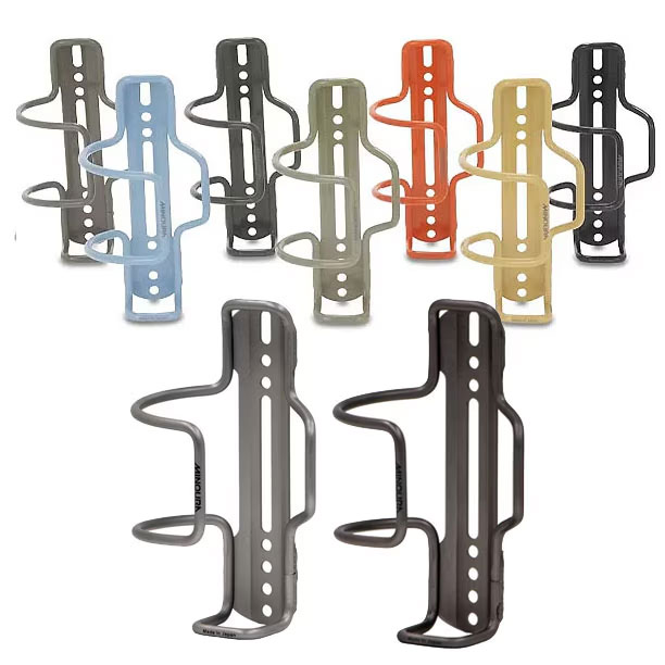 - 取り出し方向は片側からのみの専用設計となっているので取付の反対側から抜けませんが、アルミ製の頑丈なケージはその分剛性が高くボトルをしっかりホールドしてくれます。