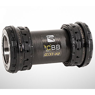 RIDEAから、カーボンコンポジット素材を使用した次世代BBが登場!- カーボンコンポジット素材は、BBで一般的に使用されるアルミやプラスチックよりも軽量かつ強度に優れ、使用状況による影響を受けにくい特徴があります。特にプレスフィットシステムに搭載されているRIDEA独自の「GeckoGrip technology」は傾斜したアタックアングルを持つBBカップとGecko Gripリングを締め合わせる事で、BBシェル内側から押し広げて固定します。