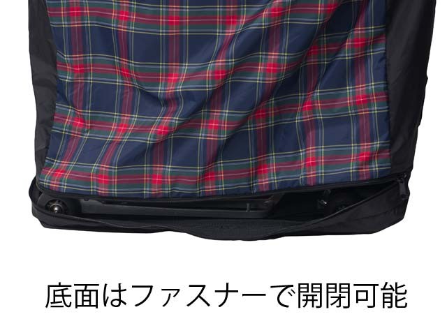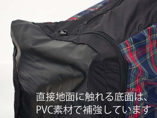 一方で、地面に接する底面はPVCコーティングの生地で補強し、コンクリートの上を引きずったり、石などの先端に触れても破れにくくしています。