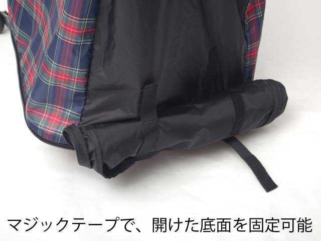 JRなど、車体を完全に収納する必要がある場合は、底面を閉め、付属のショルダーストラップで担いで移動することができます。