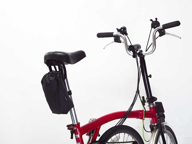 収納袋はサドルの吊り金具に取り付けることができます。