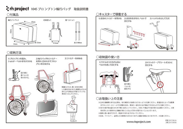 沖縄県への発送に送料無料は適用されません。購入金額に関わらず通常送料に別途加算されます。 ブロンプトン専用の輪行バッグです。 輪行時は必要に応じて底面を全開し、キャスターホイールでの移動が可能です。 ショルダーストラップは、長めの180cm。 地面に接する底面はPVCコーティングの生地で補強し、コンクリートの上を引きずったり、石などの先端に触れても破れにくくしています。 収納袋はサドルの吊り金具に取り付けることができます。 パッケージ内容:本体x1、収納袋x1、ショルダーベルト(約180cm)x1、取扱説明書x1 素材:ナイロン、PVC サイズ:幅(上部)60cm×幅(下部)55cm×縦55cm 重量:340g 生産国:日本 商品のカラー・サイズについて 商品のカラーはディスプレイの種類等により、実物と異なって見える場合がございます。 掲載商品の仕様、ロゴ等のデザインは改良のため、変更される場合がございます。 また、メーカーが発表していない寸法や個人的なフィット感についてはお答えいたしかねます。あらかじめご了承ください。