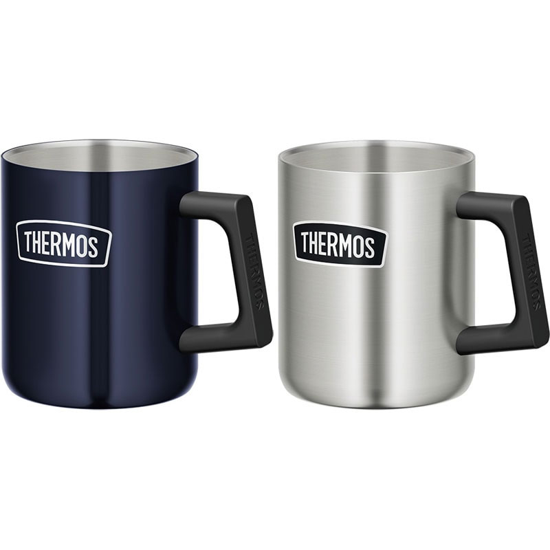 おいしさ長持ち!アウトドア仕様ステンレス製魔法びん構造のマグカップ - ハンドル付きなので持ちやすく、アウトドアでも便利です。