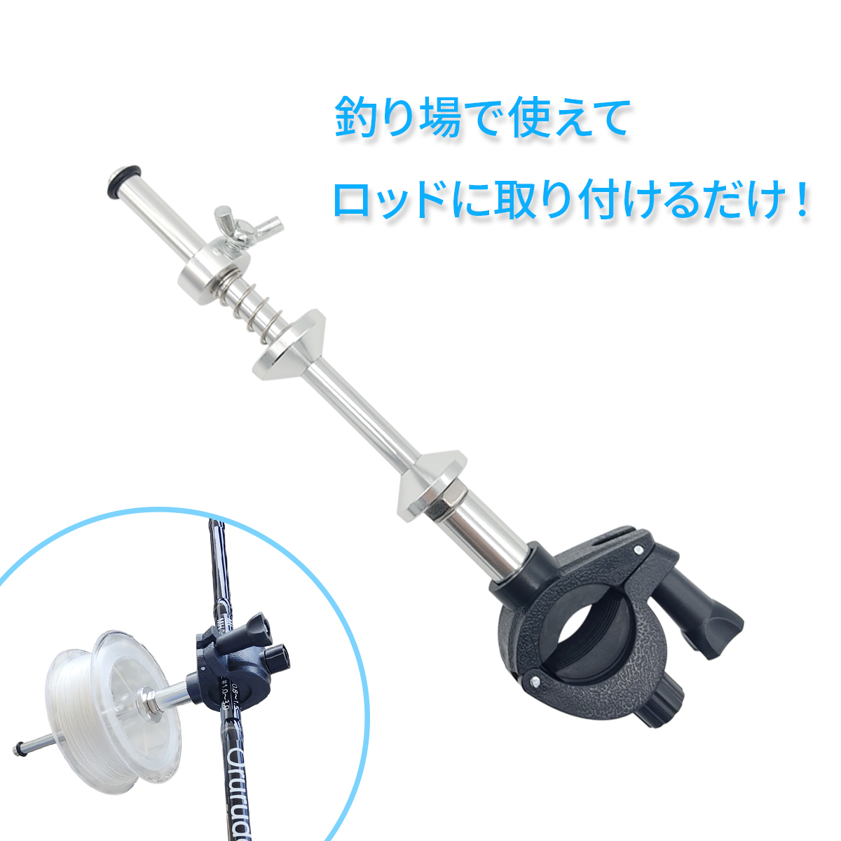 ロッドに取り付けるだけなので、場所を選ばず糸交換が可能です。