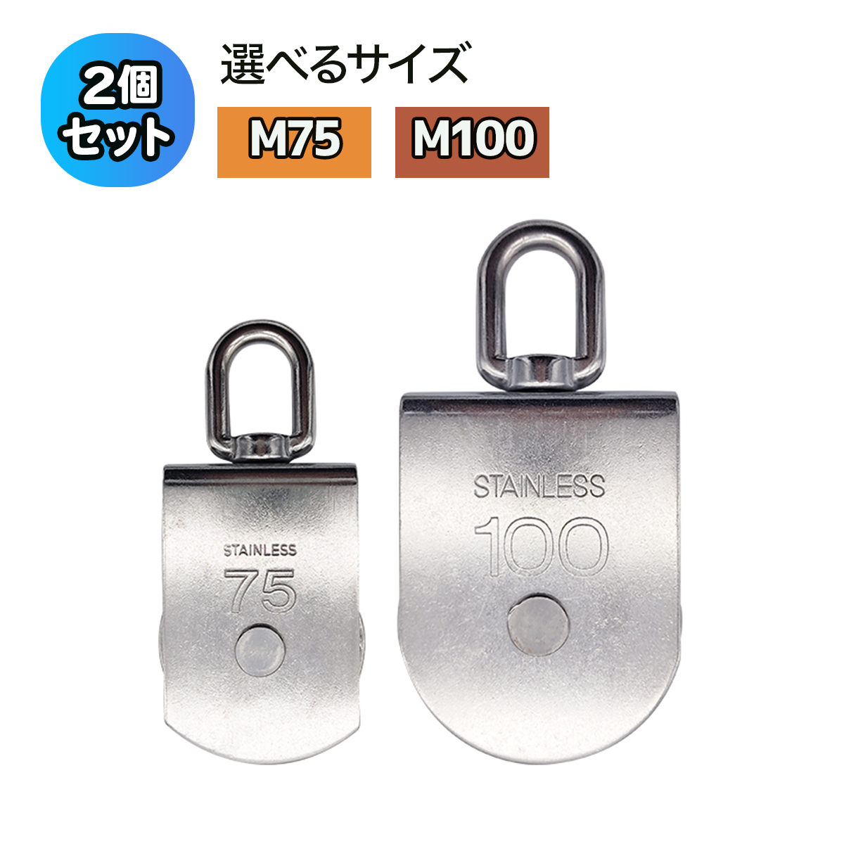 滑車 ステンレス製 ローププーリー M75 M100 2個セット 耐食性 防錆性 耐久性 耐久性 耐摩耗性 高硬度 強度 アウトドア キャンプ 登山 屋内 屋外 送料無料