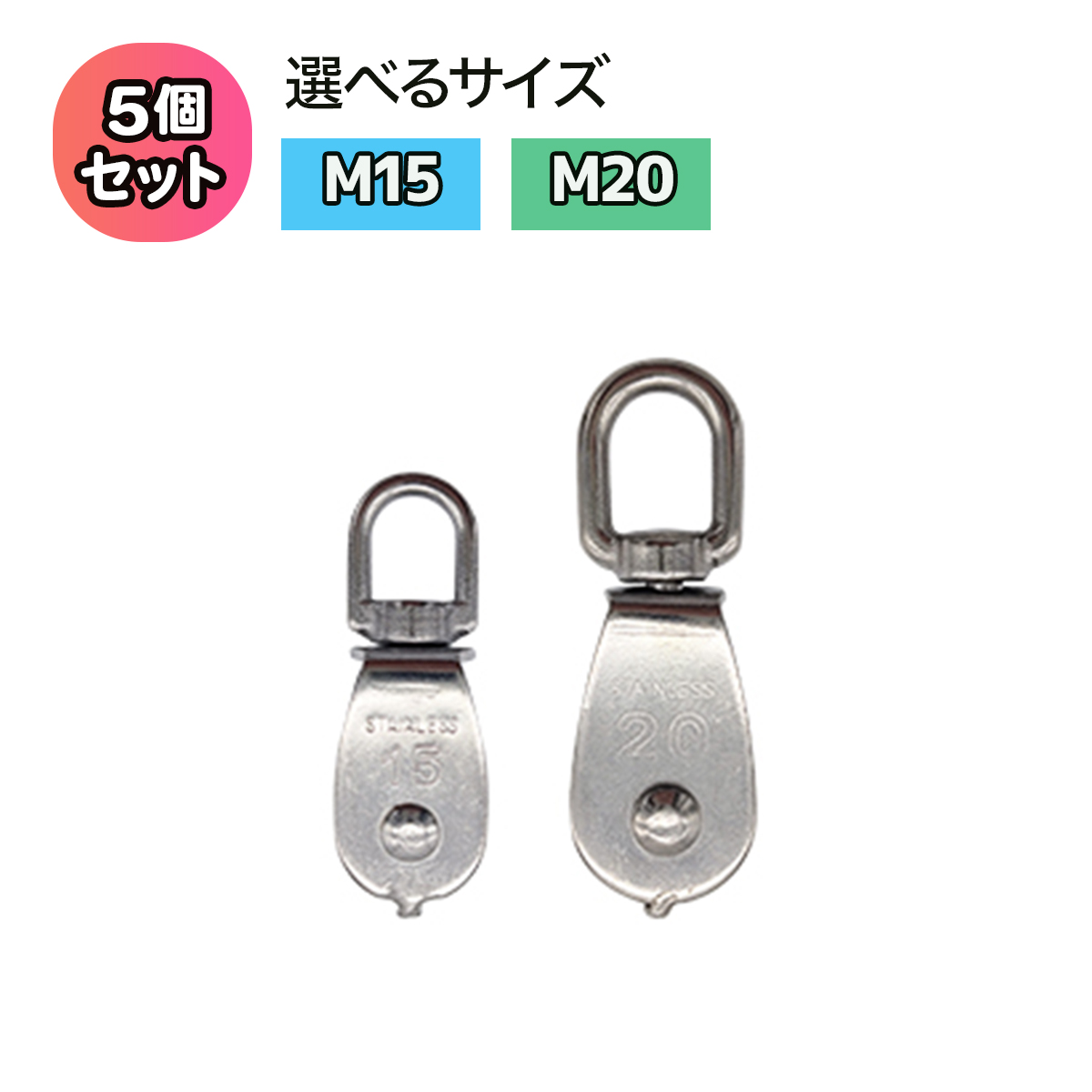 滑車 ステンレス製 ローププーリー M15 M20 5個セット 耐食性 防錆性 耐久性 耐久性 耐摩耗性 高硬度 強度 アウトドア キャンプ 登山 屋内 屋外 送料無料