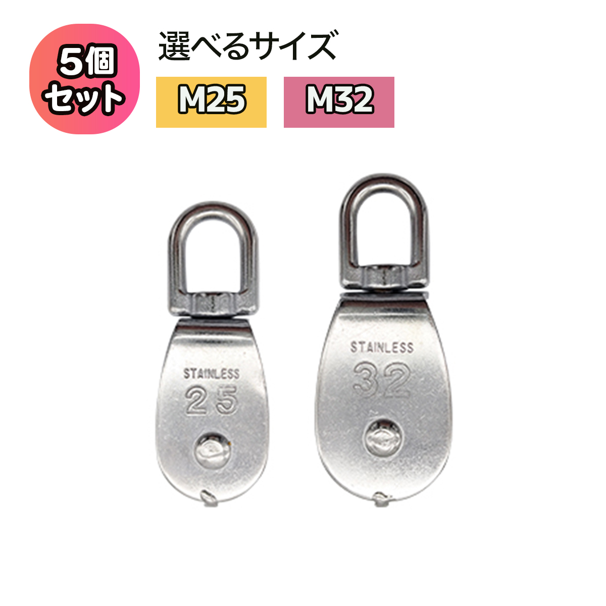 滑車 ステンレス製 ローププーリー M25 M32 5個セット 耐食性 防錆性 耐久性 耐久性 耐摩耗性 高硬度 強度 アウトドア キャンプ 登山 屋内 屋外 送料無料