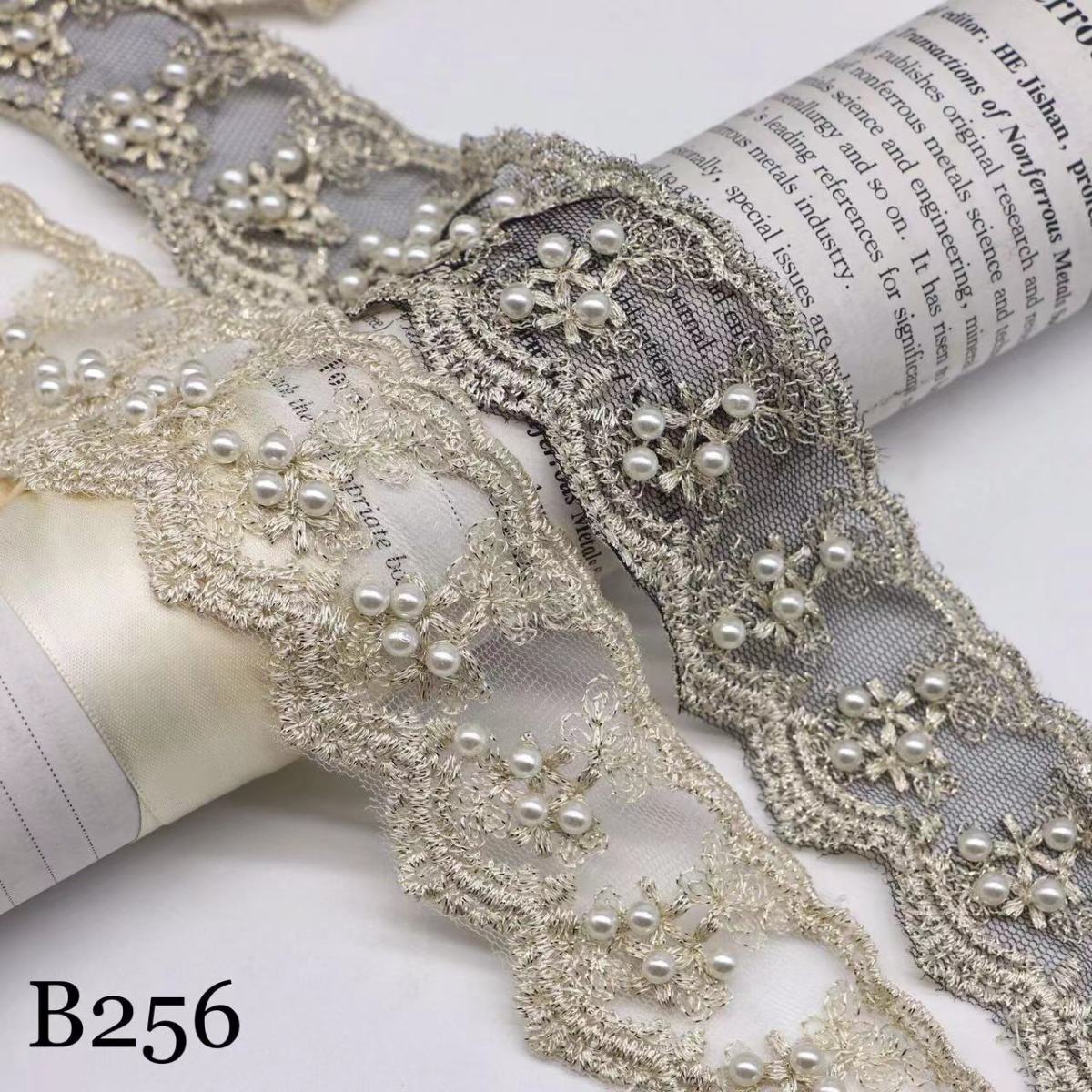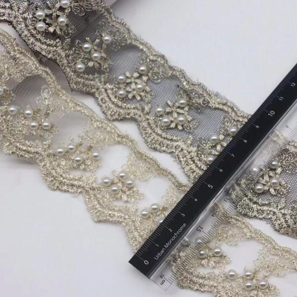 レースリボン ビーズ付き DIY 手芸用 縁飾り レース 手作り 生地 ハンドメイド 幅約4.5cm 単位1m B256