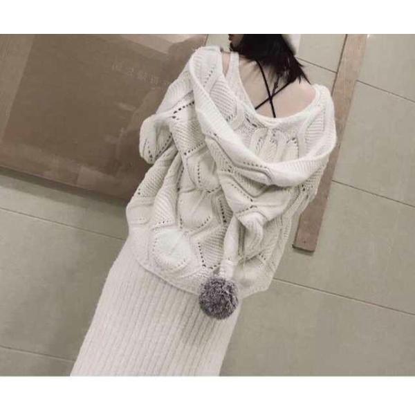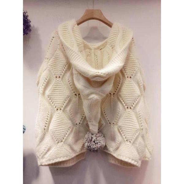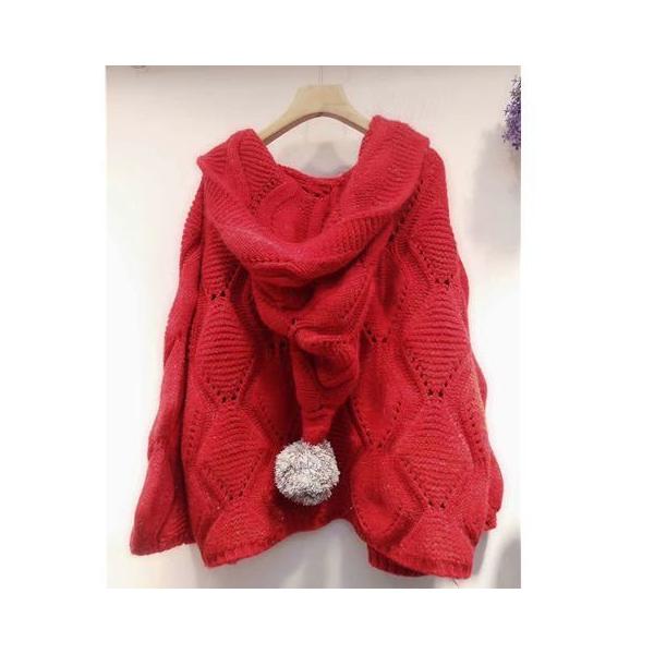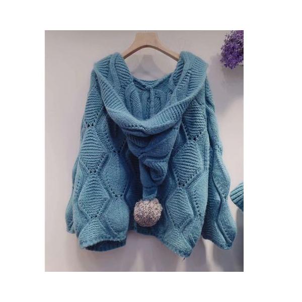 ニットカーデ ニットカーディガン セーター カーディガン ざっくりニットカーディガン レディース ゆるニット フード付き ぽんぽん 春秋 長袖 ニットアウター
