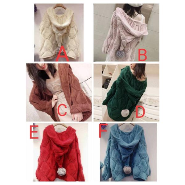LCBA009春秋レディース 可愛い フード付き 長袖 ニットセーター(6色M-2XL)