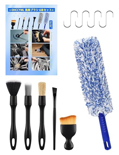 洗車ブラシ ボディ用 ディティールブラシ 洗車 ホイールブラシ 6本セット S字フック4個付き 洗車 ブラシ 筆ブラシ 隙間掃除 タイヤホイ