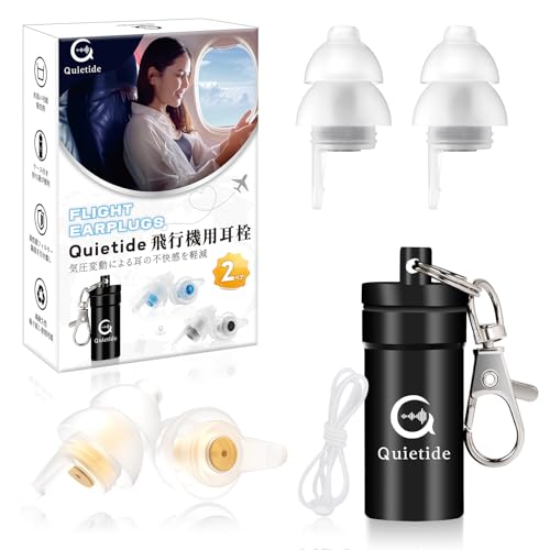 耳栓 飛行機 Quietide 飛行機用耳栓 気圧調整 耳せん 聴覚障害予防 イヤープラグ 飛行機 電車 睡眠 仕事 水洗い可能 繰り返し使
