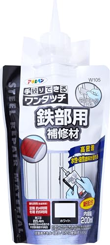 アサヒペン 充填材 ワンタッチ 鉄部用補修材 200ml W105 ホワイト 手絞りパウチ ヘラ付き 鉄部 鉄製品 高密着 隙間補修 耐候性 雨水の侵入防止 日本製