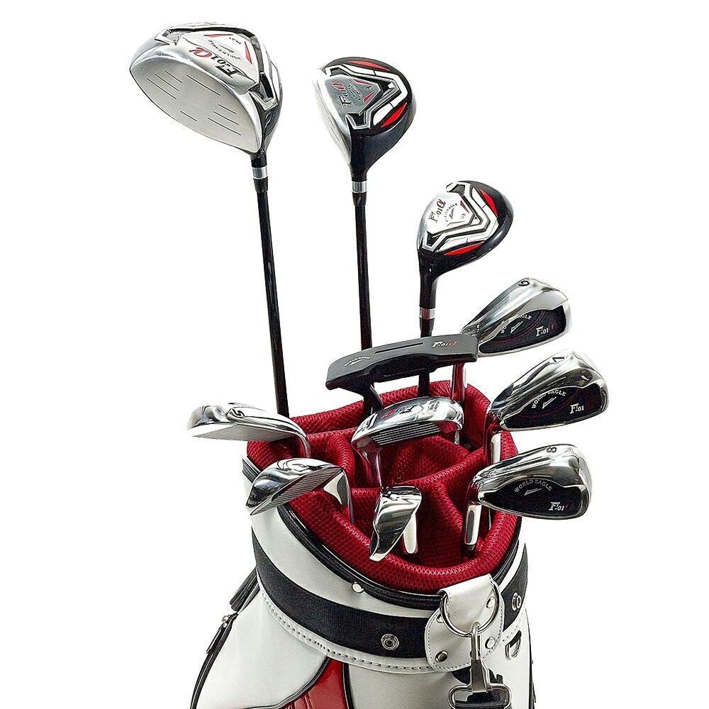 ゴルフクラブセット ワールドイーグル メンズ F-01 クロス 14点(11本)ゴルフセット キャデイバッグ付 ホワイトレッド 左用 初心者 新品 爆買