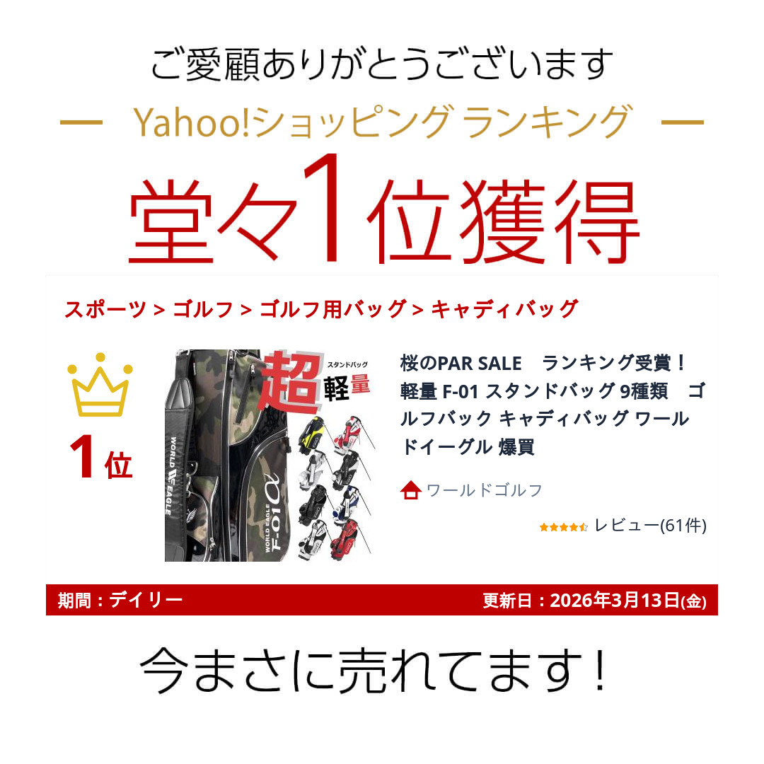 桜のPAR SALE ランキング受賞!軽量 F-01 スタンドバッグ 9種類 ゴルフバック キャディバッグ ワールドイーグル 爆買