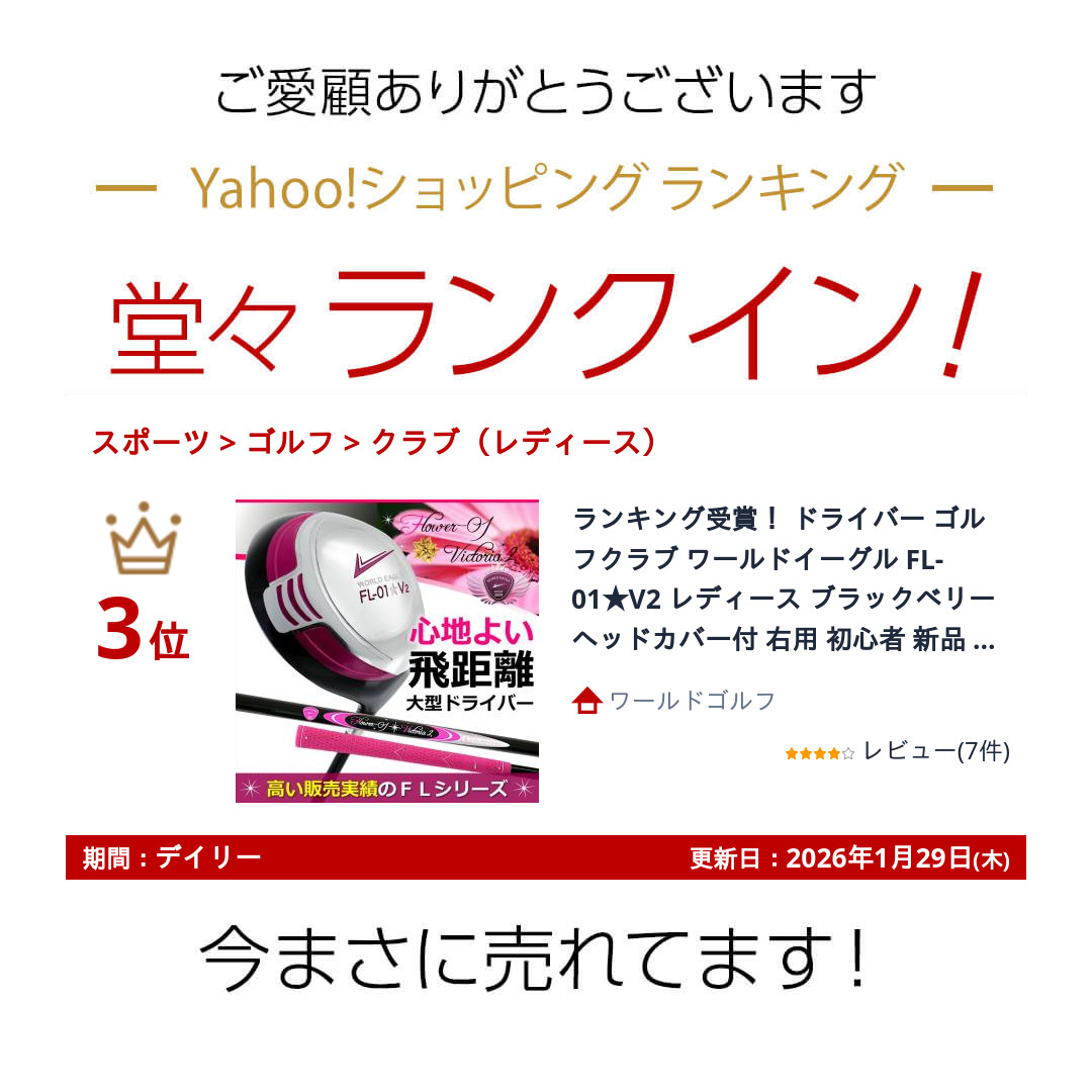 ランキング受賞! ドライバー ゴルフクラブ ワールドイーグル FL-01★V2 レディース ブラックベリー ヘッドカバー付 右用 初心者 新品 爆買