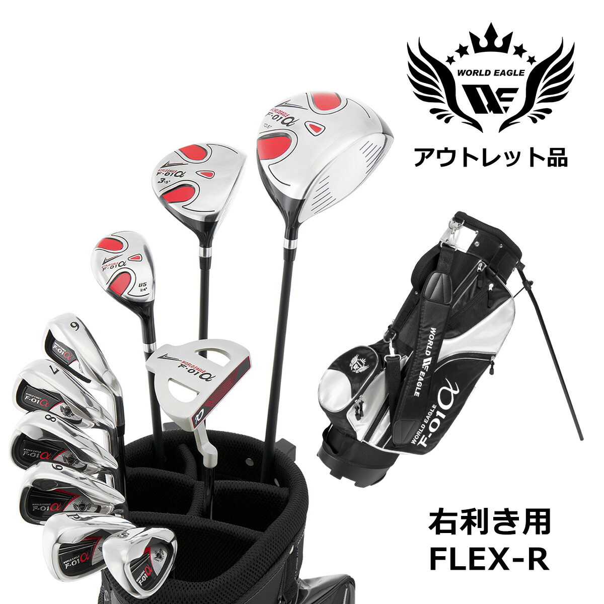 アウトレット品 メンズ ワールドイーグル クラブセット F-01 13点 右用 R スタンドバッグ F-01 Bシルバー 爆買