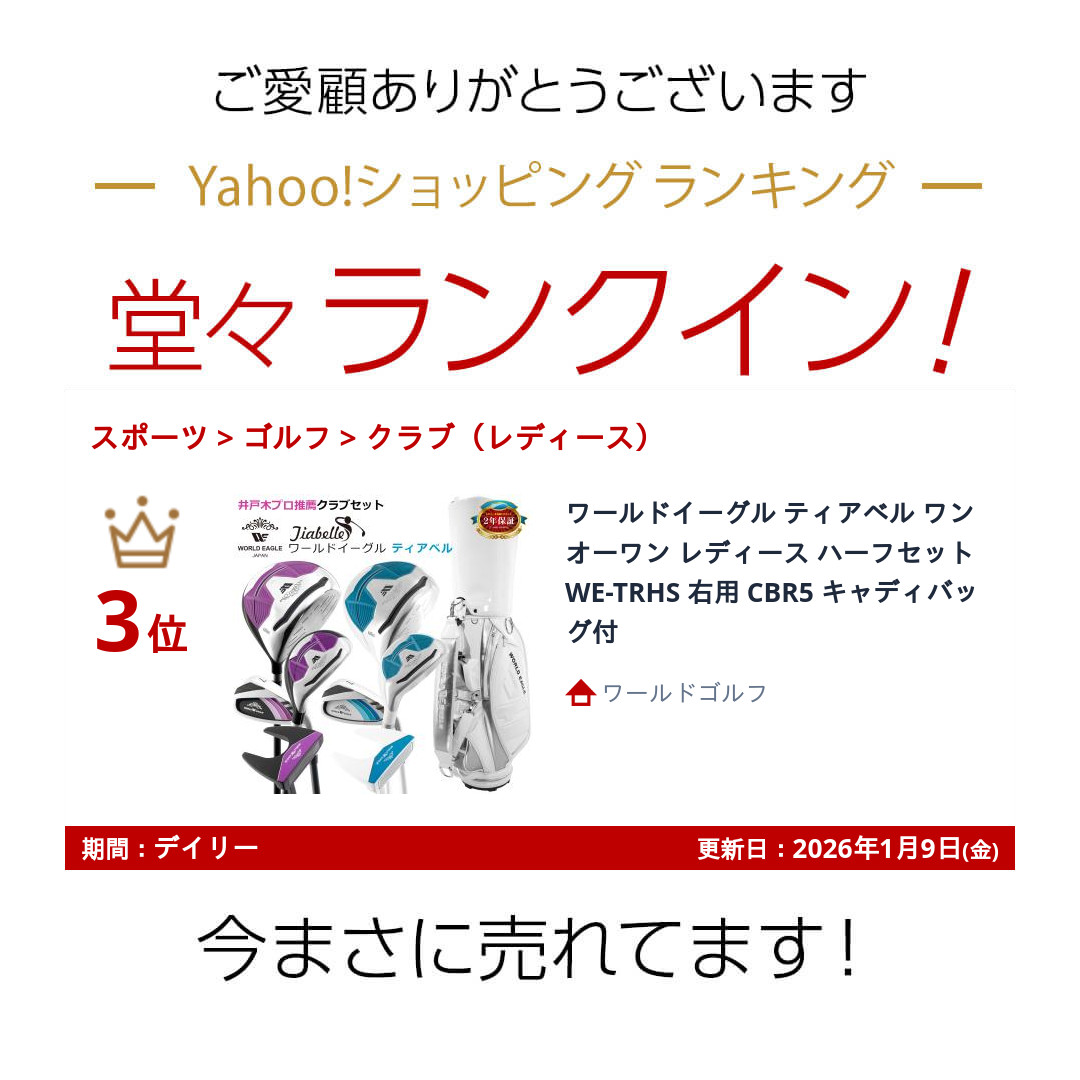 ランキング受賞! ワールドイーグル ティアベル ワンオーワン レディース ハーフセット WE-TRHS 右用 CBR5 キャディバッグ付