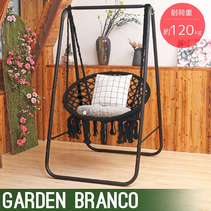 自立式 ハンモックチェア ガーデンブランコ ハンギングチェア スタンド チェア ロープ式 アウトドア インテリア 室内