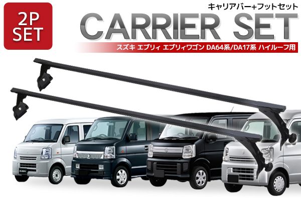 DA64V DA64W DA17V DA17W エブリィ ハイルーフ用 ベースキャリアバー 最大搭載量40kg スクエアバータイプ エンドキャップ付 長尺物 収納スペースの拡大に 取付簡単