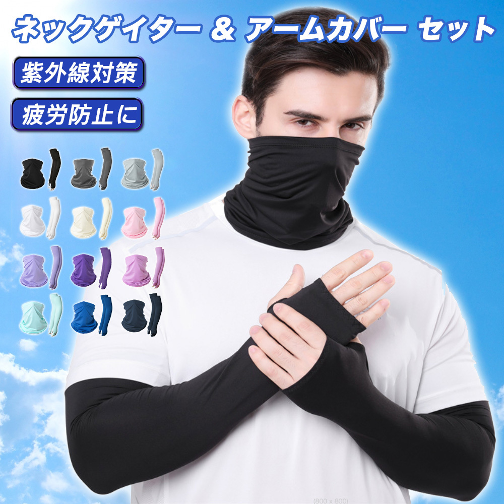 フェイスガード UV マスク スポーツ ネックカバー 夏 冷感 涼しい アームカバー メンズ レディース 紫外線対策 グッズ ネックガード 日焼け 腕 2点セット