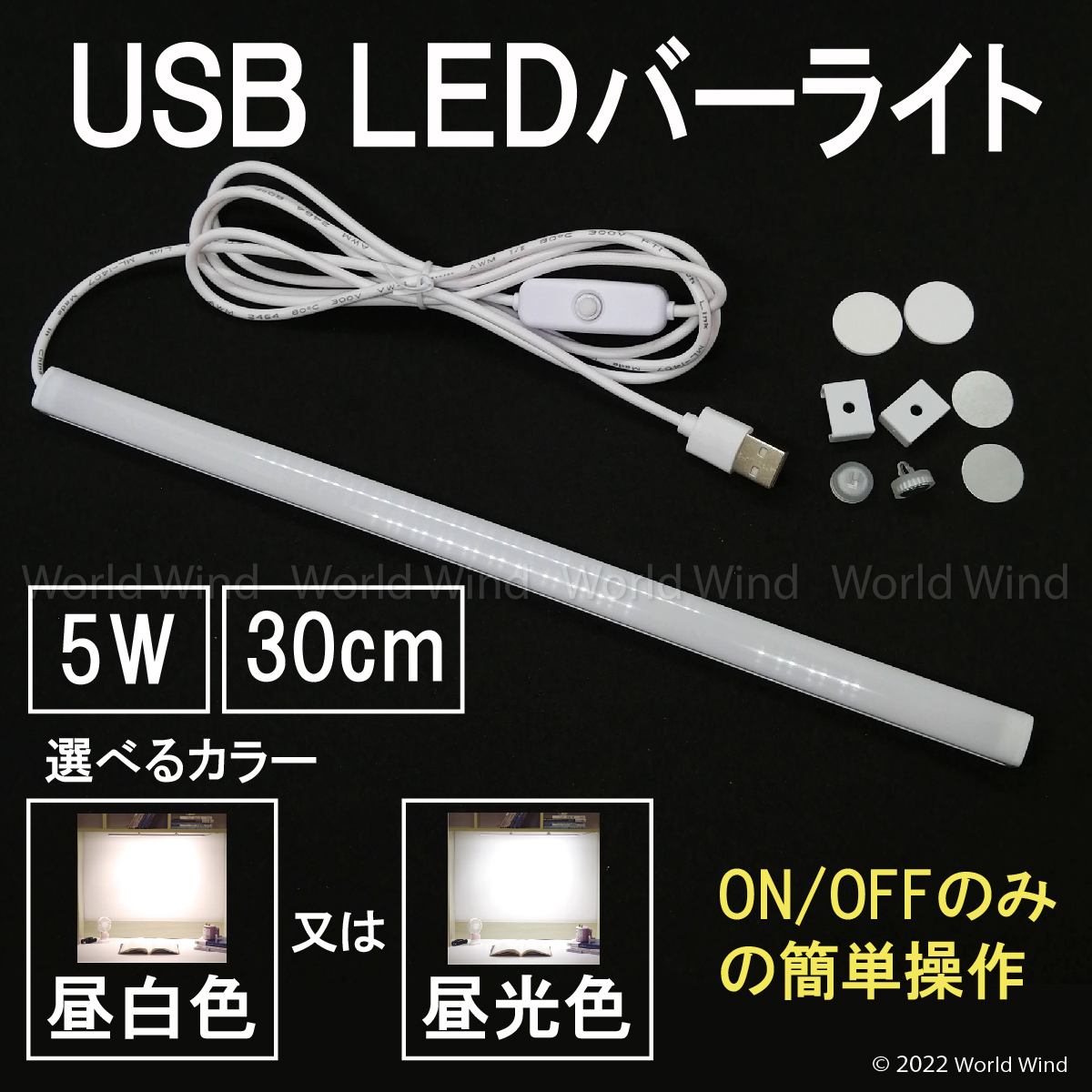 LED バーライト 蛍光灯 デスク キッチン スリムタイプ マグネット USB給電式 30cm