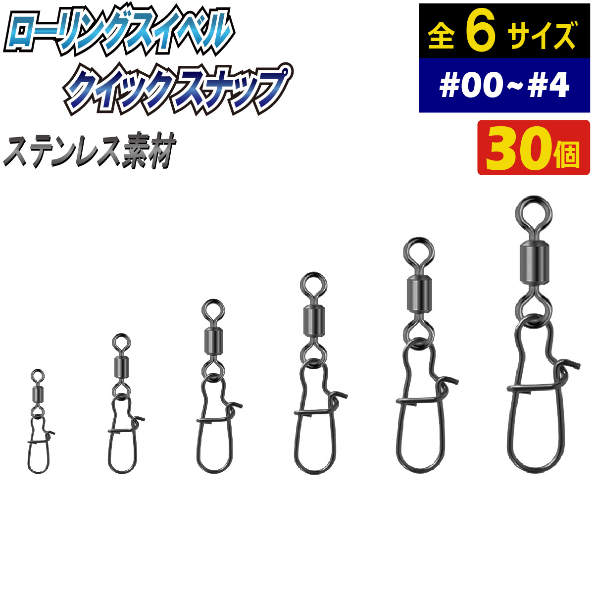 ローリング スイベル クイック スナップ サルカン 釣り具 仕掛け #00~#4 30個 ステンレス 耐腐食