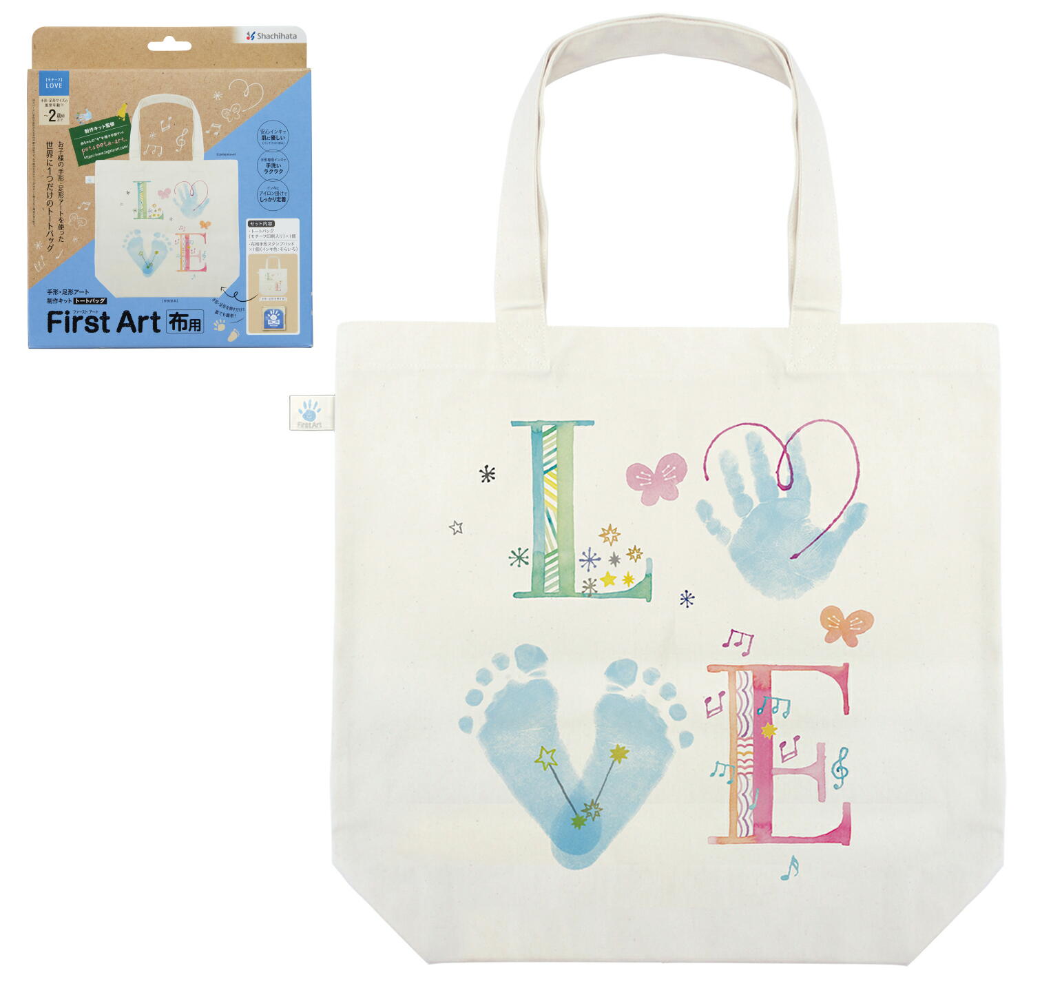 【First Artシリーズはこちら】お子様の手形・足形でオリジナルの「スタイ」や「トートバッグ」を作ることができる制作キット「First Art布用」。