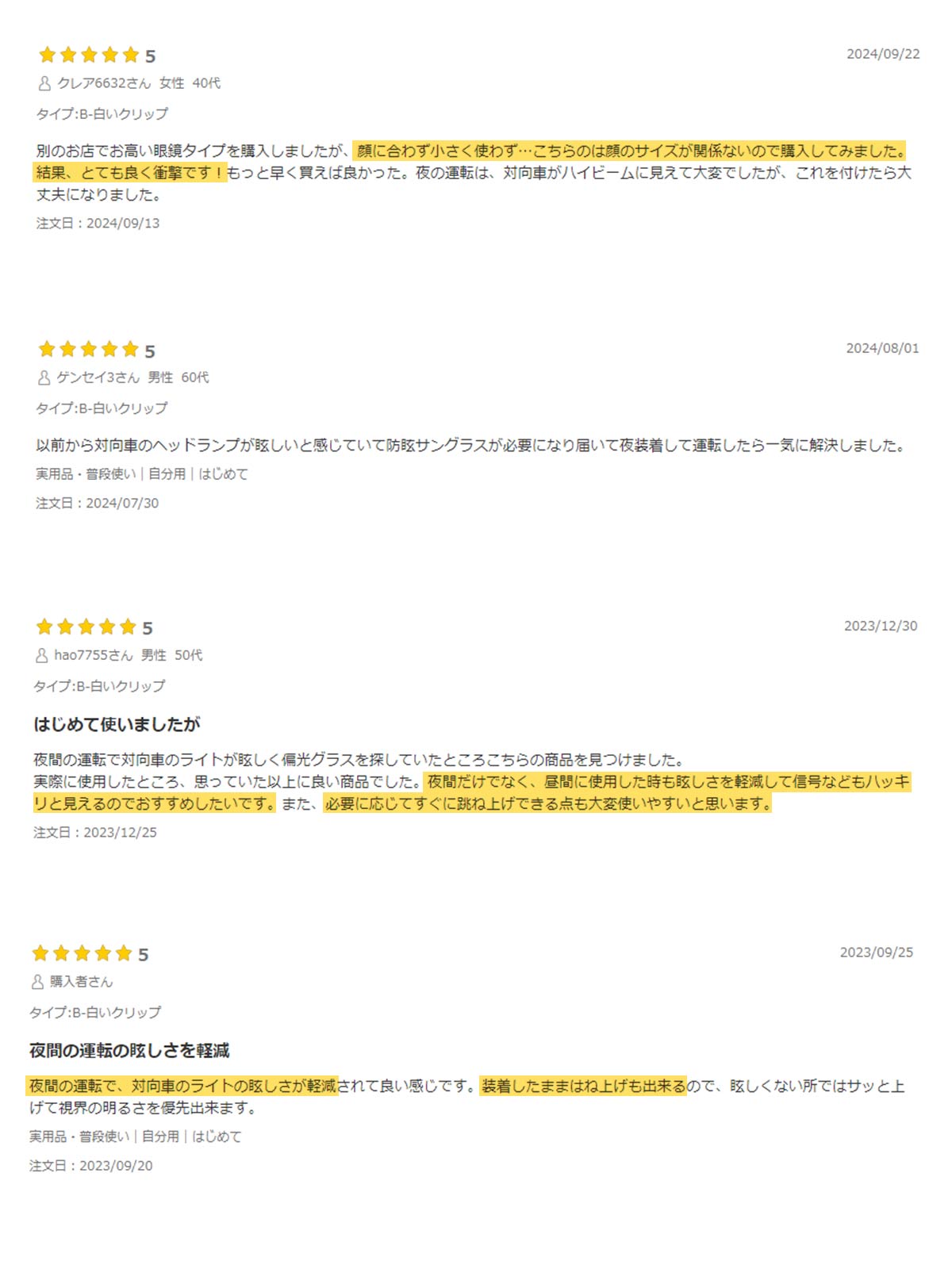 夜間、或いは雨、霧、曇りの天候の際にご着用頂くことにより、視野を良くし、より明るくてクリアな視界となります。
