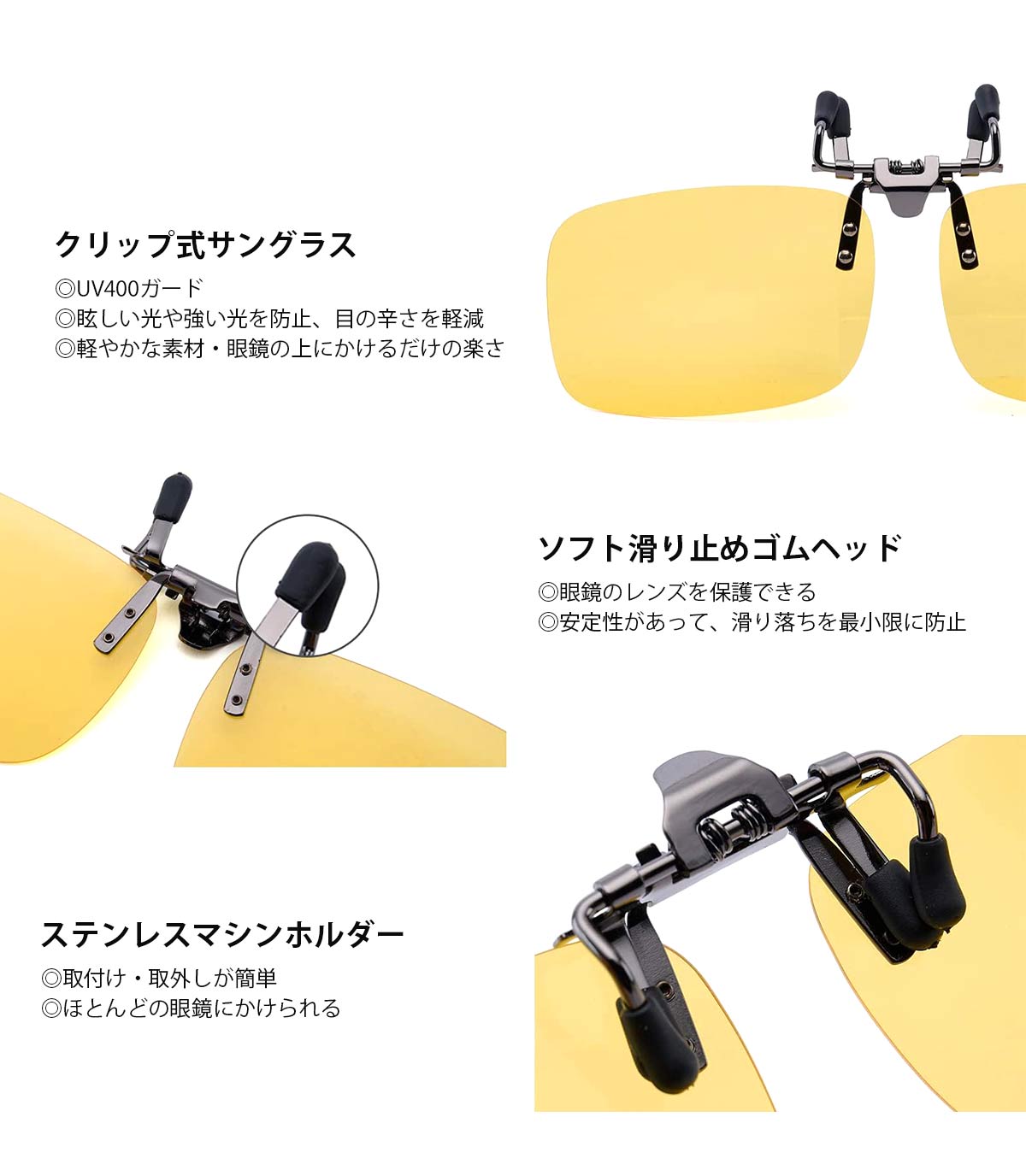 偏光レンズ 夜間走行 偏光 サングラス クリップオン 跳ね上げ式 クリップ ナイトビジョン 夜釣り ナイトドライブ soxick 父の日 プレゼント ギフト 男女兼用爆買