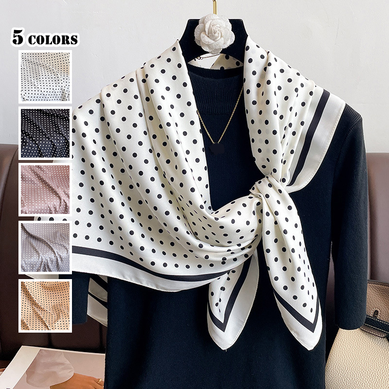 スカーフ ドット柄 肩掛け 大判スカーフ 正方形 ストール プレゼント ギフト レディース ネックスカーフ uv UVカット スカーフ 秋 冬 春物 可愛 おしゃれ W-764