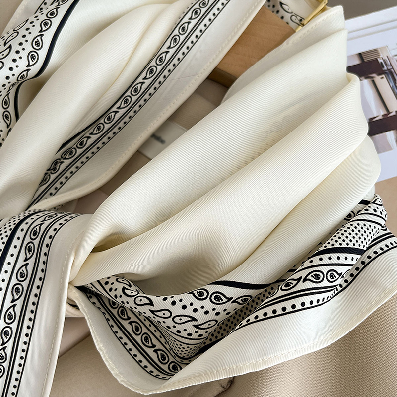 寒いときだけのものだけでなく、夏にするスカーフは日焼け防止、紫外線対策や、冷房対策にもなります。